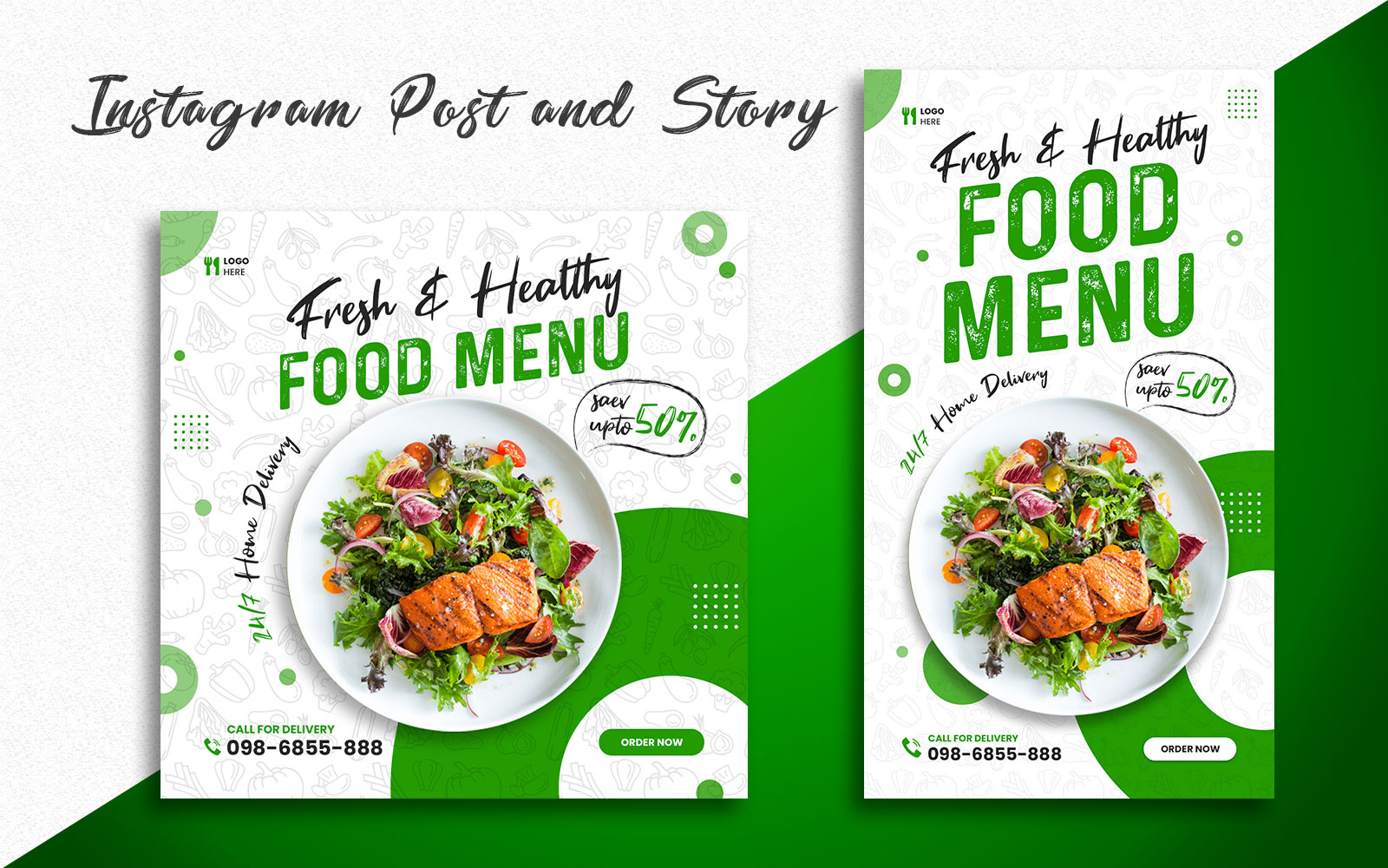 Fresh Healthy Food | Instagram Post And Story | Social Media Template