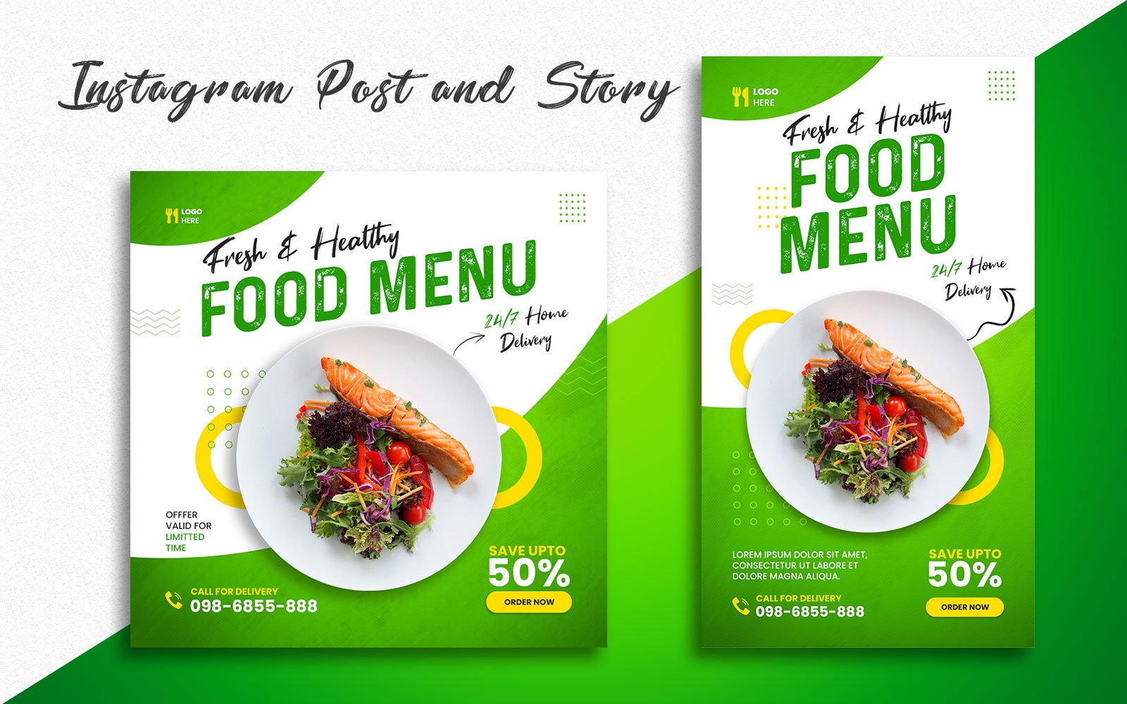 Fresh And Healthy Food | Instagram Post And Story | Social Media Template