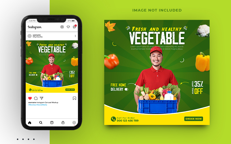 his is a square banner Vegetables social media template, we made this template to promote vegetables and Fruits business for social media like Instagram, Twitter, Facebook, YouTube, marketing, event, etc. You can easy edit all element and change your image because we made for editable and customizable.