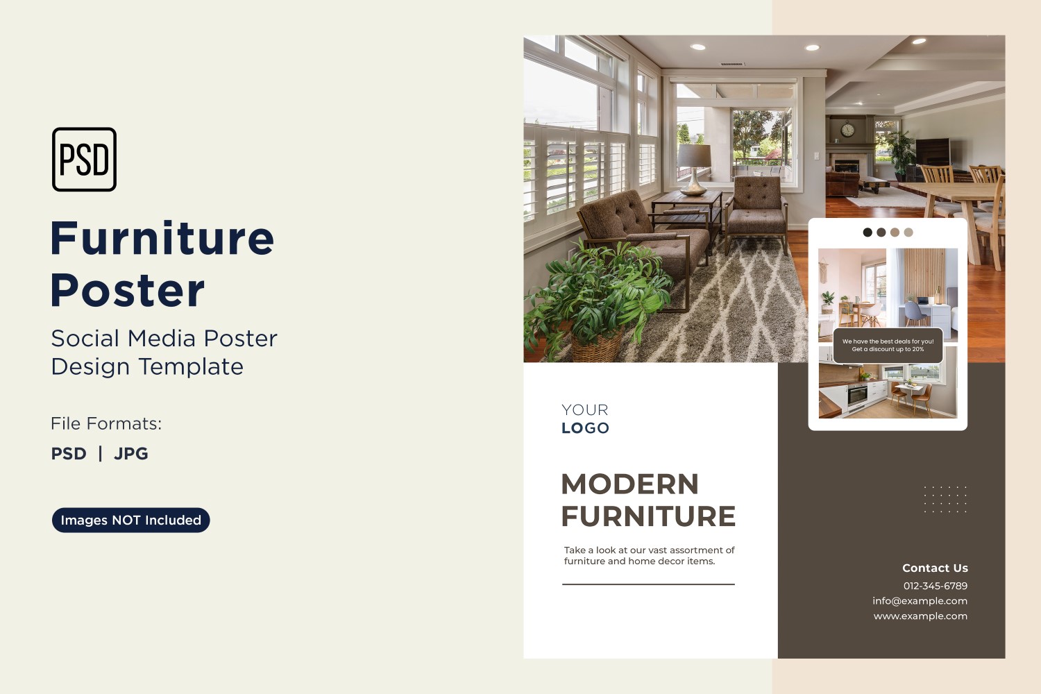 I aimed to create this poster template to be visually appealing for furniture promotions, and you can use it for advertising and marketing materials. This template will enhance your marketing efforts and engage your audience.