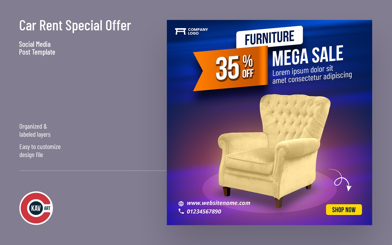Social media banner template set for furniture mega sale, offers and deals. Fully editable and organized layers to modify banner very easily.