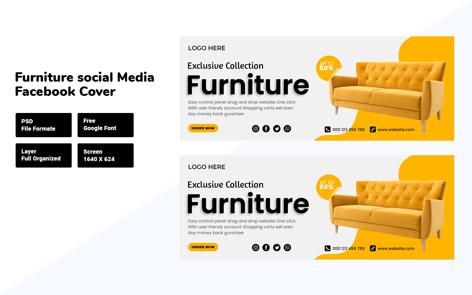 Furniture template is well organized d. Images, text, and colors can be fully edited. You can edit it quickly and easily. All psd is very well organized. Layer by name & group. The image container is Smart-Objects to make it easy for you to add images and edit files.
