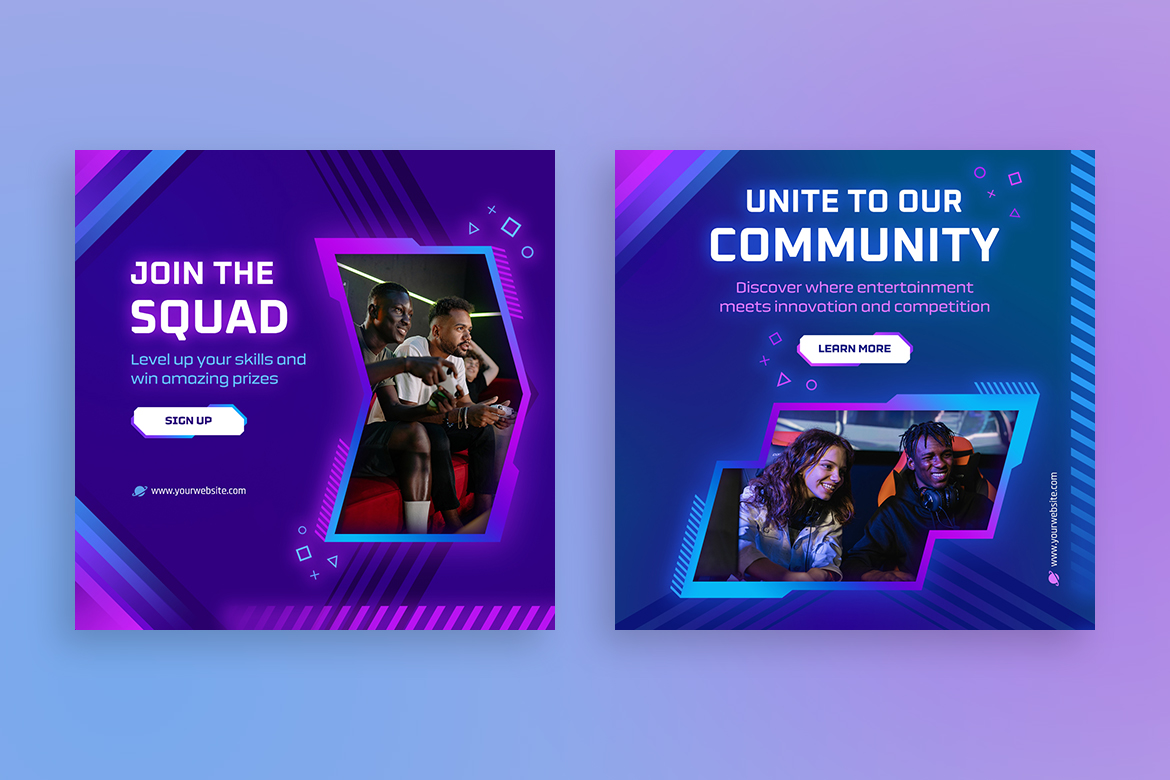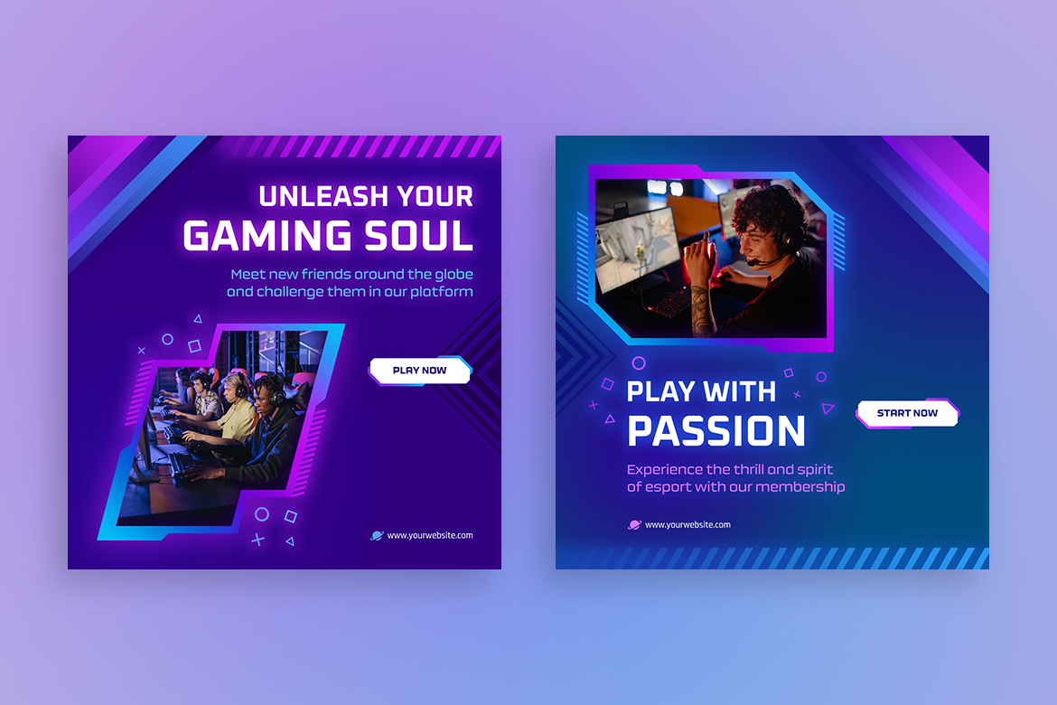 This set of templates is perfect for creating engaging and eye-catching posts that will capture the attention of your target audience. You can use it to announce new games, tournaments, leagues, updates, features, and promotions. You can also use it to share tips, tricks, reviews, news, and stories. It also allows you to interact with your followers, ask for feedback, run contests, and reward loyalty.