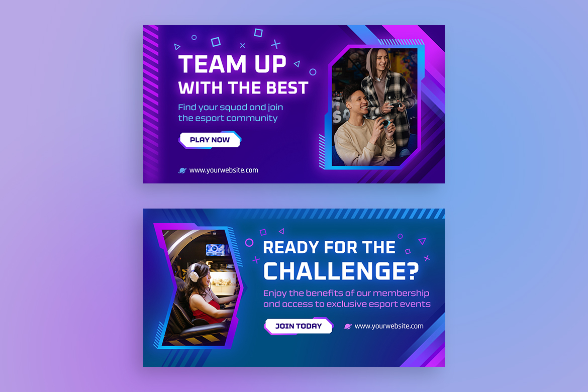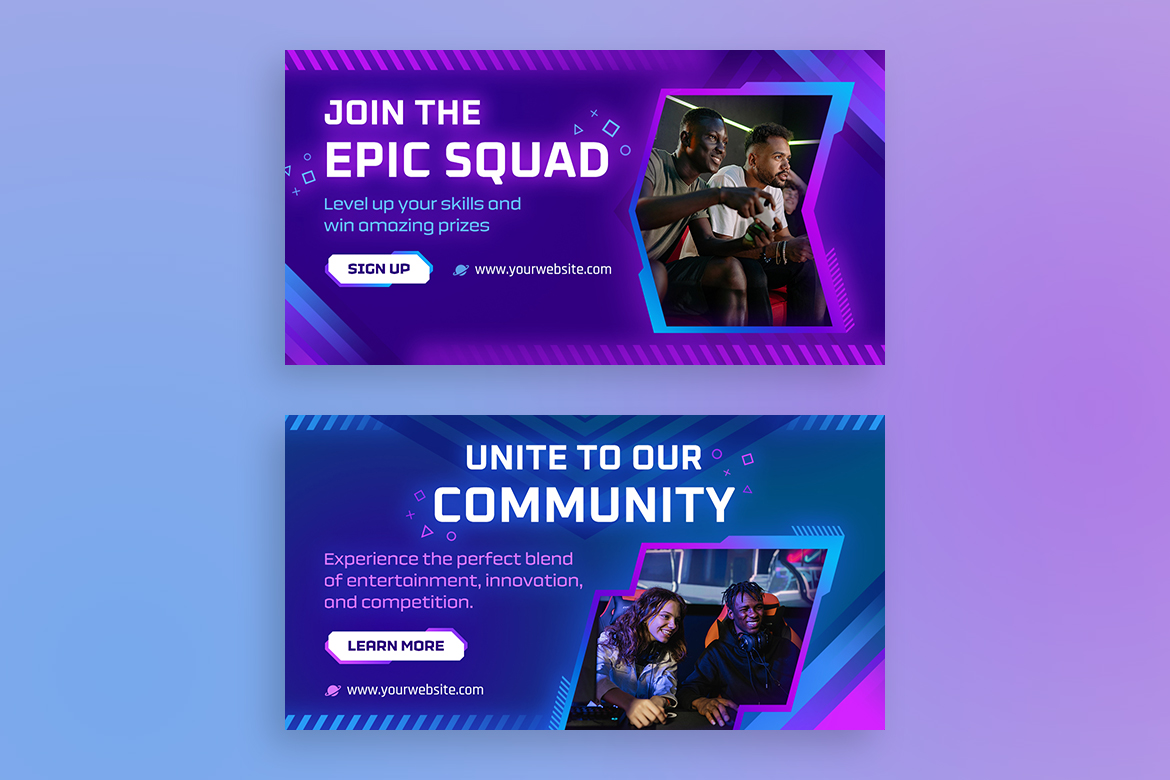 - Dynamic and Gamer-Centric Designs: Our templates feature bold, vibrant designs that resonate with gamers and esports enthusiasts. From striking graphics to immersive layouts, these templates will make your brand stand out in the digital realm.