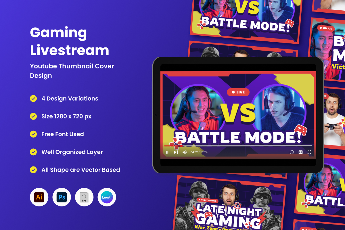 Capture viewers' attention instantly with this professional gaming livestream thumbnail design. Perfectly optimized for YouTube, it helps your content stand out, engage audiences, and drive clicks with its bold, creative, and visually stunning layout.