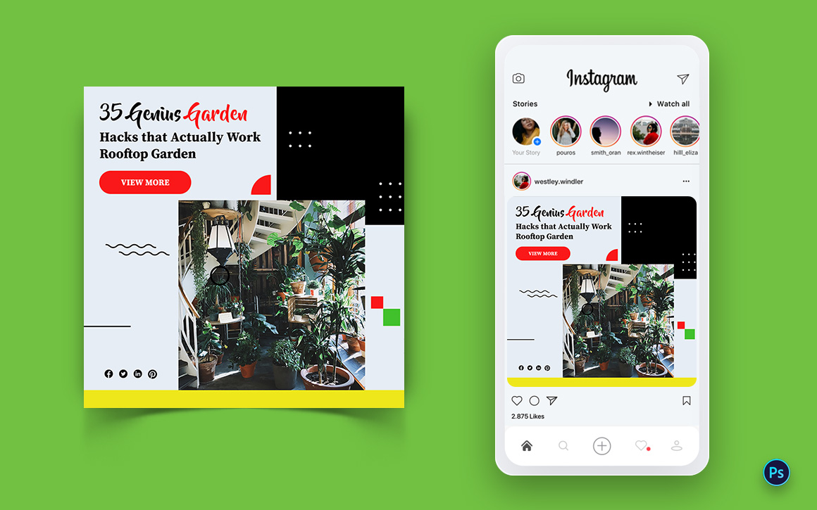 Beautiful and Elegant Social Media Instagram Post Template. This Template is fully customizable and compatible with Adobe Photoshop. PSD Files Included. Pixel Perfect. Modern and Creative Design. You can easily update your Social Media Instagram Post in a Stylish and Colorful!