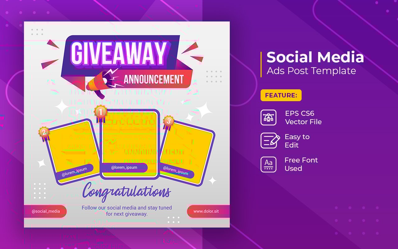 Giveaway winner announcement social media post banner template Social Media