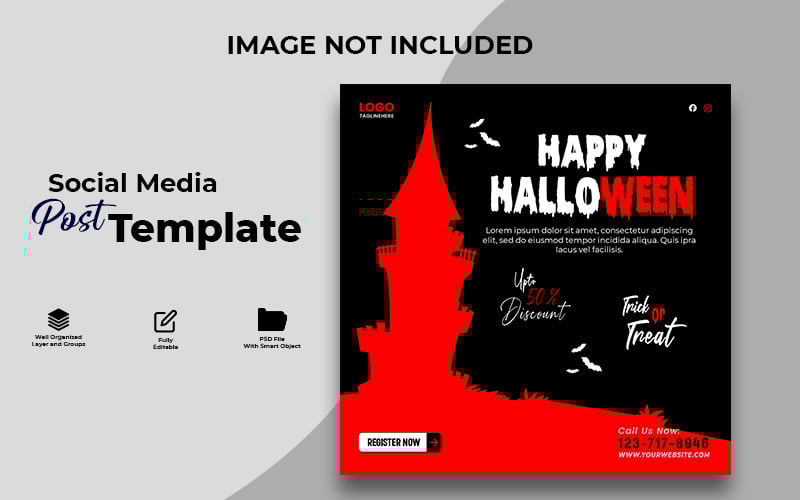 Make your Halloween promotions stand out with this bold red and black PSD banner template! Featuring a haunted castle, spooky typography, and a striking discount offer, this design is perfect for Halloween sales, event ads, and social media marketing. The file is fully layered, editable, and print-ready for easy customization. Adjust colors, text, and layout to suit your brand or client’s needs. Perfect for designers, marketers, and businesses running seasonal Halloween promotions.