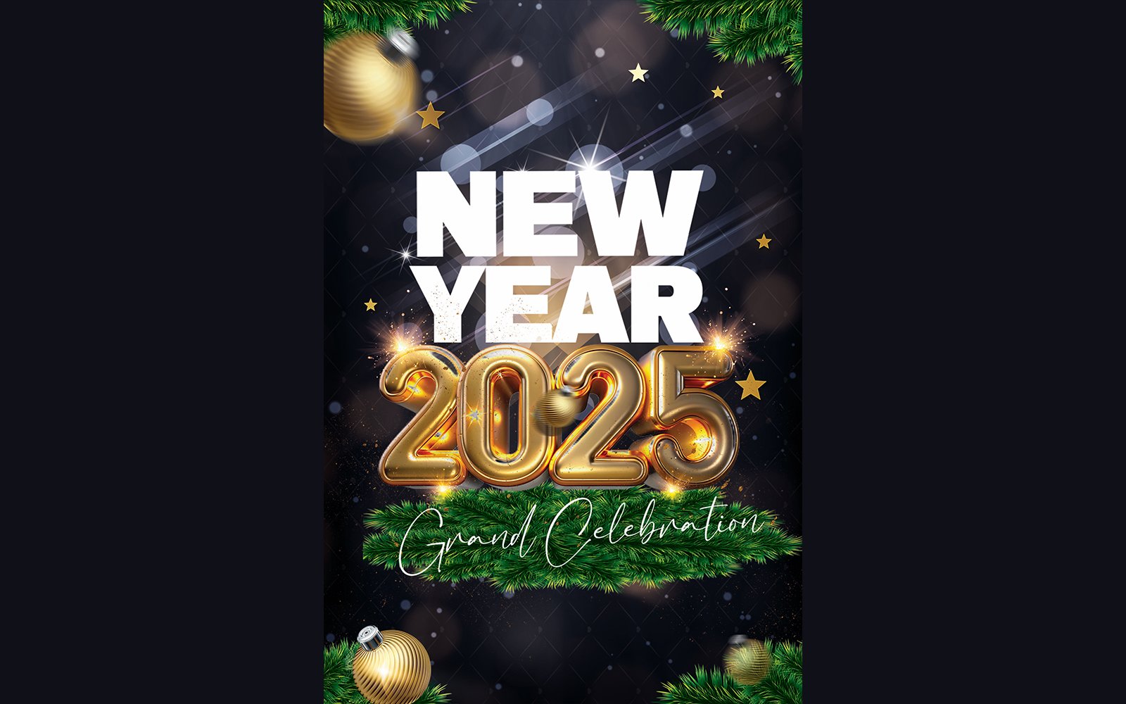 Get ready for the biggest New Year’s Eve bash with this stunning New Year 2025 flyer design. Featuring bold golden 3D text for "2025," festive holiday decorations, and vibrant lighting effects, this template is perfect for promoting grand celebrations, parties, and events. The design incorporates bright stars, pine branches, and sparkling ornaments, giving it a luxurious yet festive feel. Fully editable and layered, this high-resolution template is ideal for print or digital use. Make your New Year event stand out with this premium flyer!