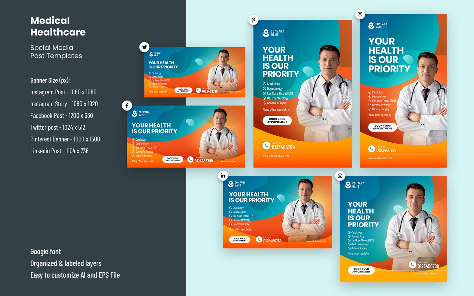 Health care medical social media post banner template is perfect to promote / advertise your medical and health care services on social media and website.