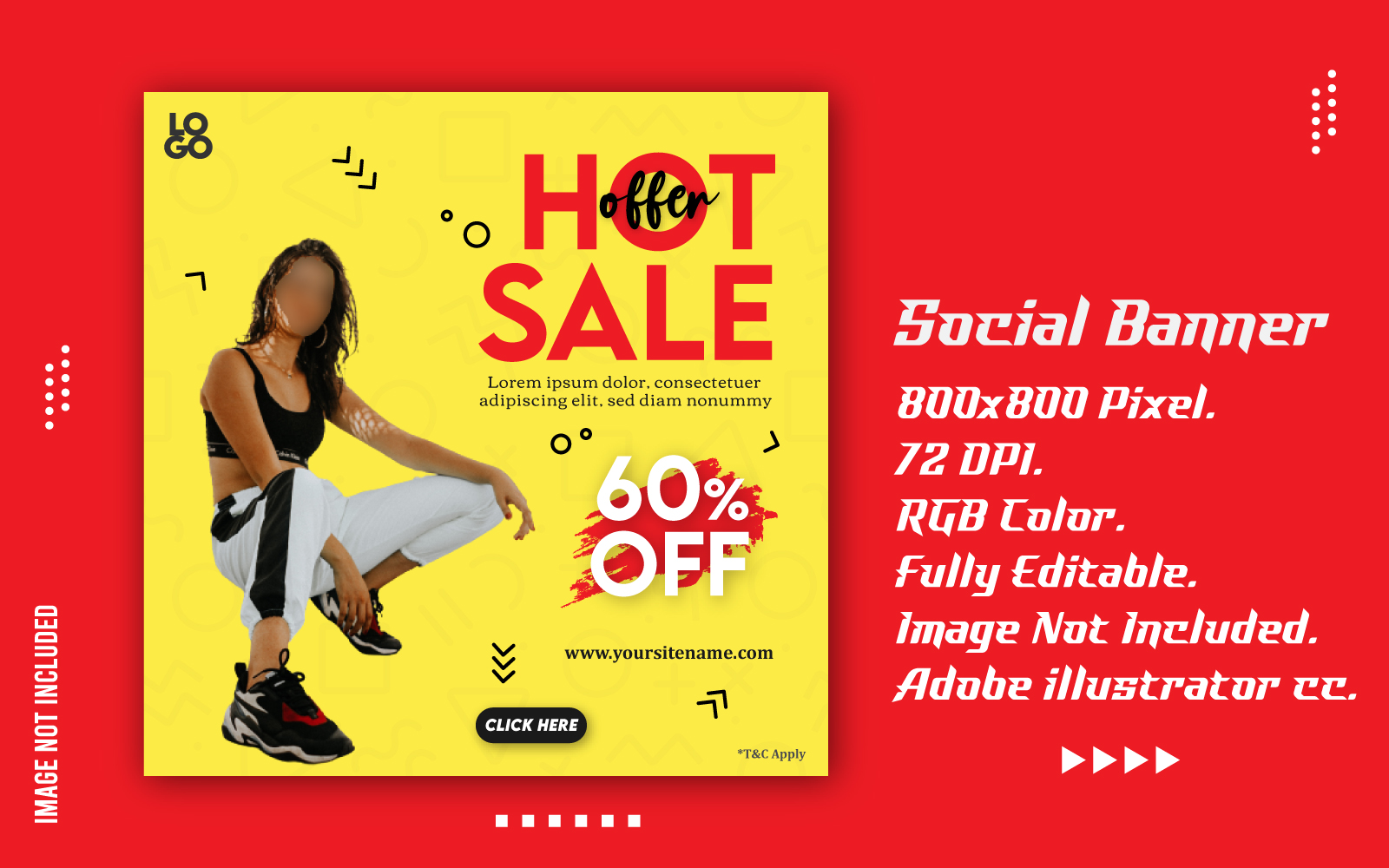 This is a Social media sale banner template. Created by Adobe Illustrator. The latest design, easy photo changing options, and free fonts have been used. All parts of the template included a photo to placeholders and the text area can be customized.