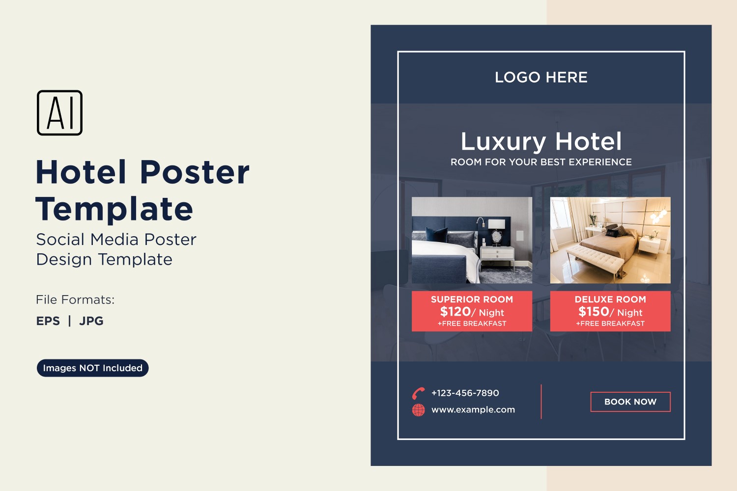 I aimed to create this poster template to be visually appealing for hotel promotions, and you can use it for advertising and marketing materials. This template will enhance your outreach efforts and engage your audience.