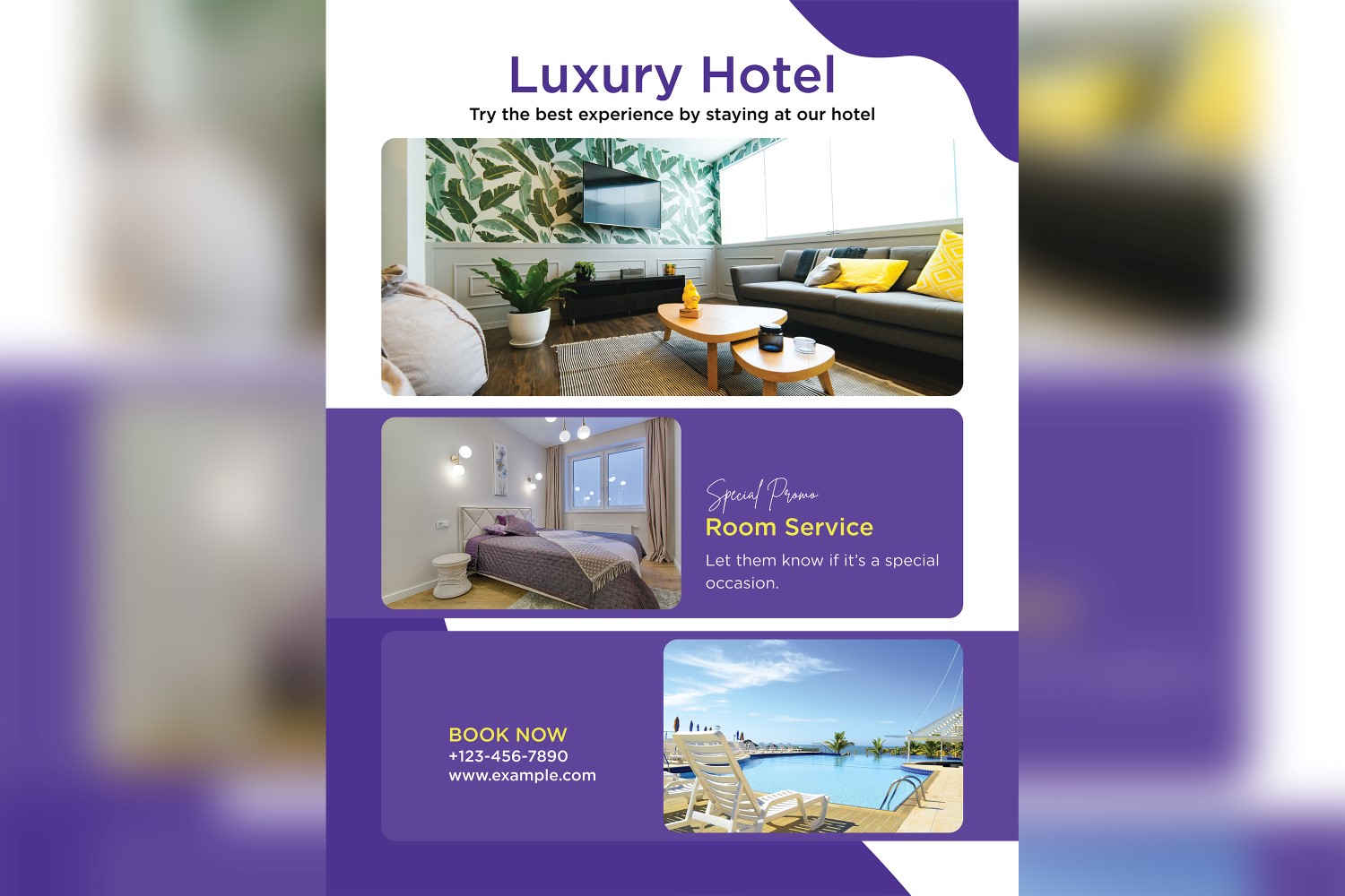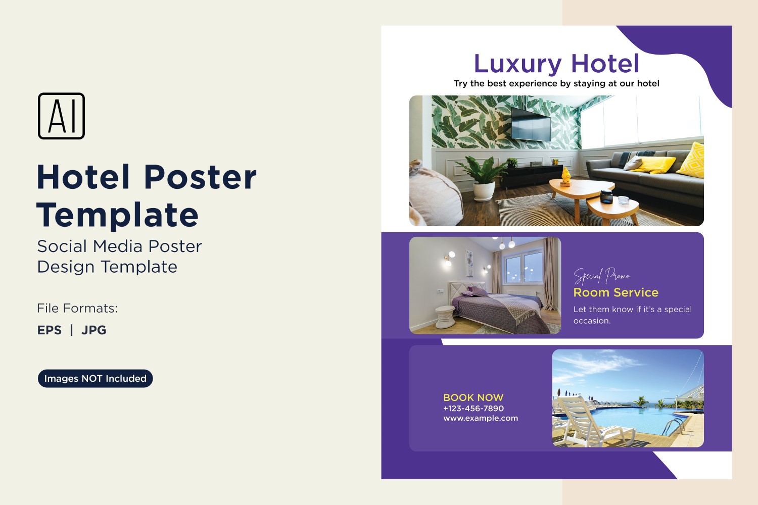I aimed to create this poster template to be visually appealing for hotel promotions, and you can use it for advertising and marketing materials. This template will enhance your outreach efforts and engage your audience.