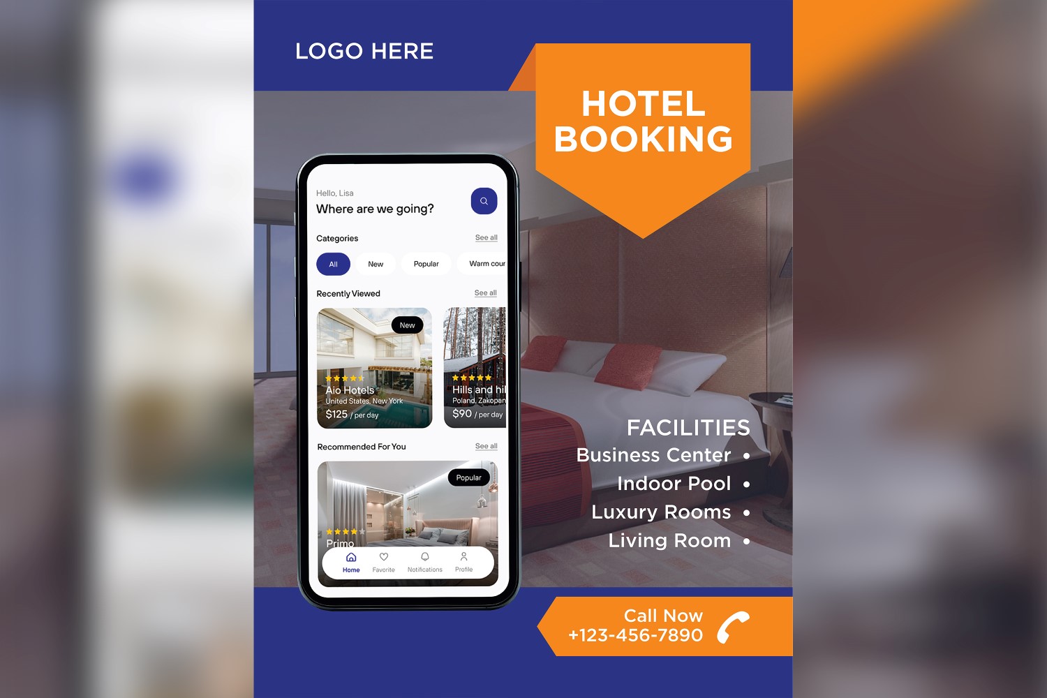 I aimed to create this poster template to be visually appealing for hotel promotions, and you can use it for advertising and marketing materials. This template will enhance your outreach efforts and engage your audience.