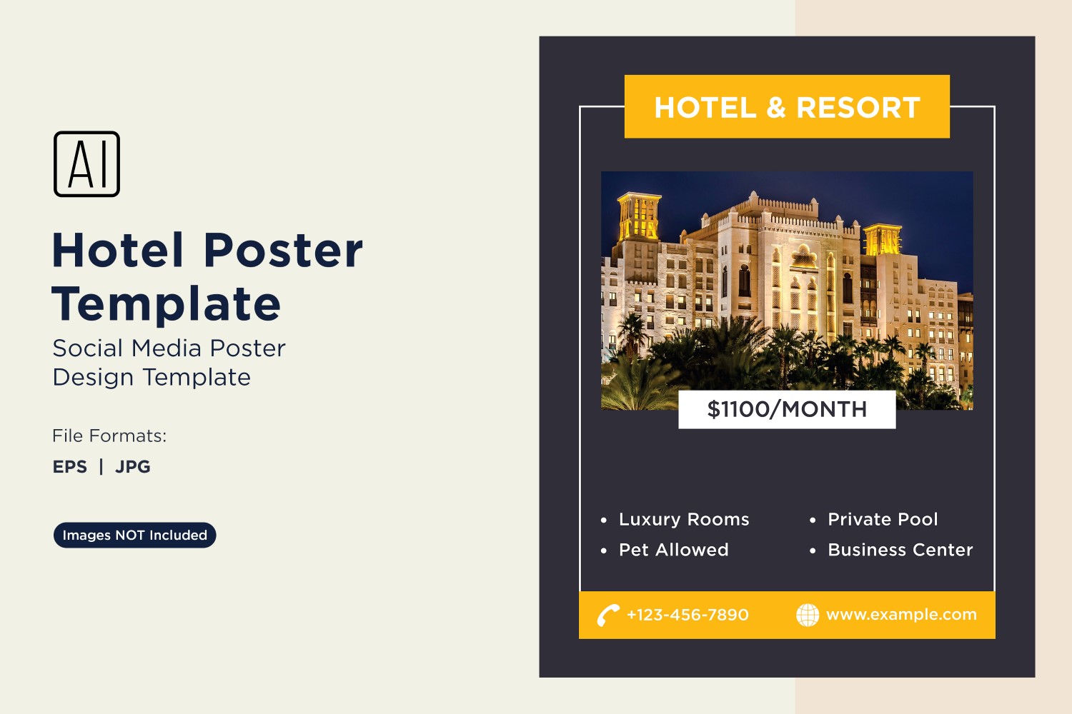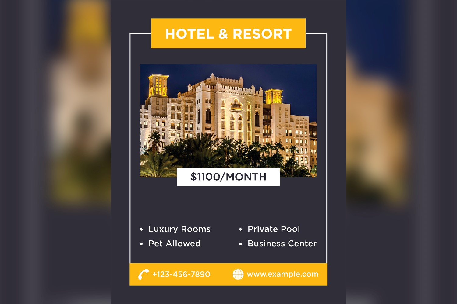 I aimed to create this poster template to be visually appealing for hotel promotions, and you can use it for advertising and marketing materials. This template will enhance your outreach efforts and engage your audience.
