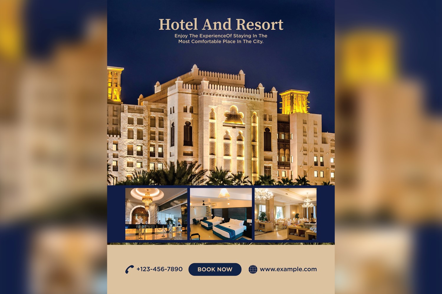 I aimed to create this poster template to be visually appealing for hotel promotions, and you can use it for advertising and marketing materials. This template will enhance your outreach efforts and engage your audience.