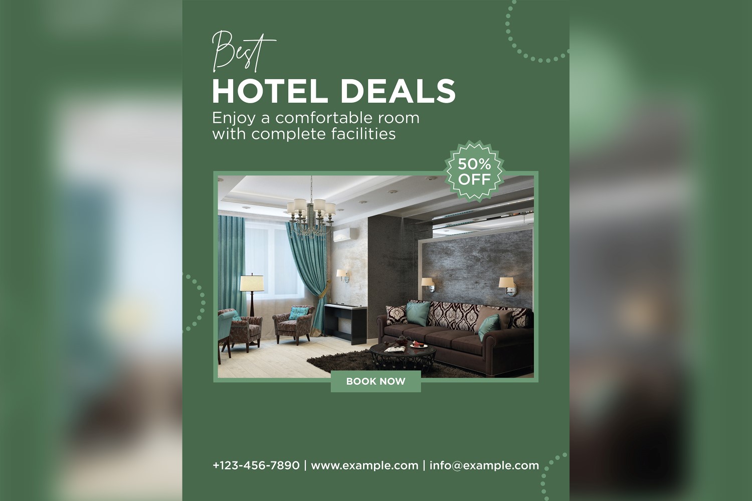 I aimed to create this poster template to be visually appealing for hotel promotions, and you can use it for advertising and marketing materials. This template will enhance your outreach efforts and engage your audience.