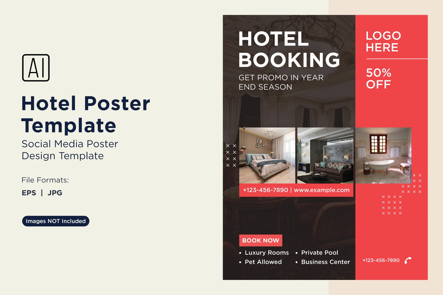 I aimed to create this poster template to be visually appealing for hotel promotions, and you can use it for advertising and marketing materials. This template will enhance your outreach efforts and engage your audience.
