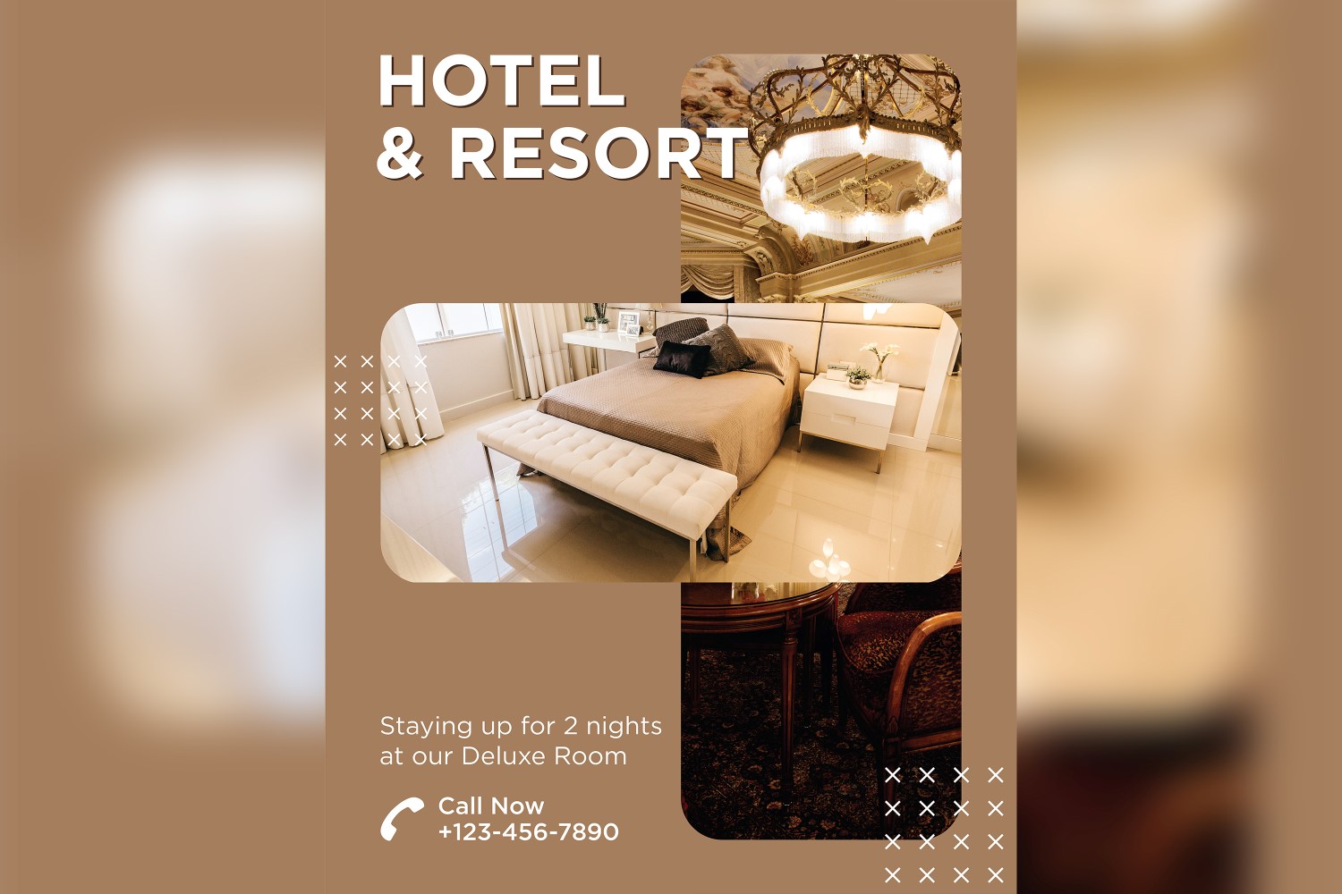 I aimed to create this poster template to be visually appealing for hotel promotions, and you can use it for advertising and marketing materials. This template will enhance your outreach efforts and engage your audience.