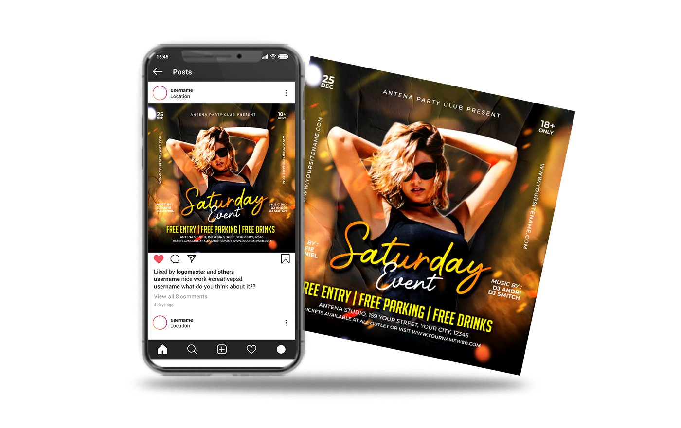 you can use this template to invite your friends or promote a party, or event, ideal for nightclub concerts, a Ladies Night Out Party, Urban Music Night event, etc.