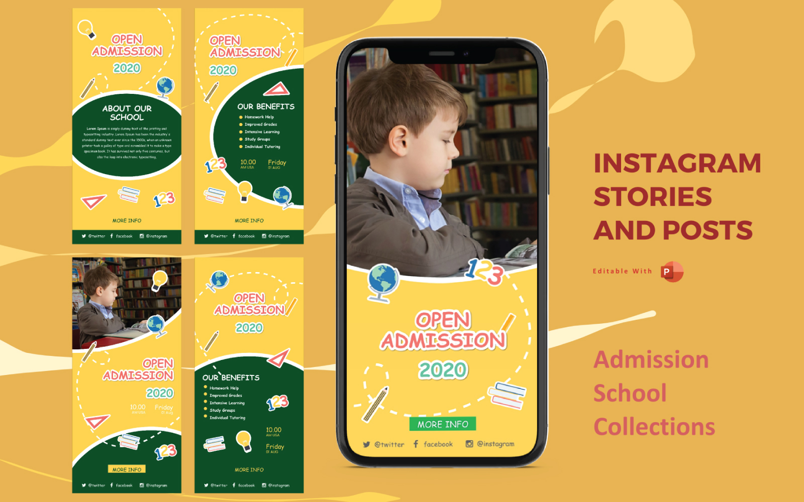 Instagram Stories and Posts Powerpoint Social Media Template - School Admission