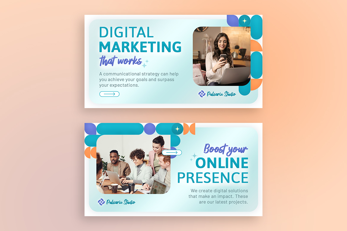 - Versatility in Application: Whether you’re highlighting your digital marketing services, showcasing your graphic design portfolio, or sharing insights on creative strategy, our templates cater to a wide range of promotional needs in the creative industry.