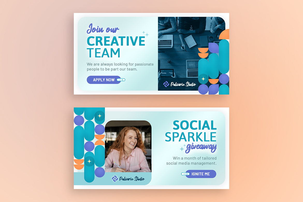 - Versatility in Application: Whether you’re highlighting your digital marketing services, showcasing your graphic design portfolio, or sharing insights on creative strategy, our templates cater to a wide range of promotional needs in the creative industry.