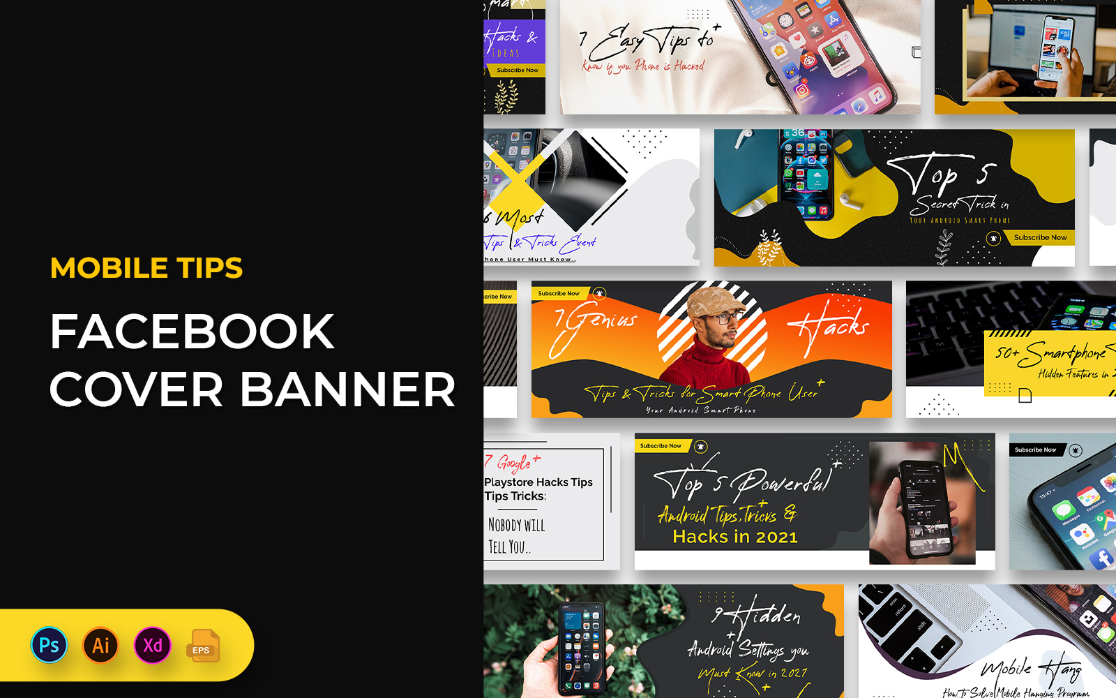 This Facebook Cover Banner Templates contains 10 Beautiful and Elegant designs. Each templates are fully customizable and compatible with Adobe Photoshop, Illustrator and Adobe XD. You can easily update your Facebook Cover in a Stylish and Colorful..!