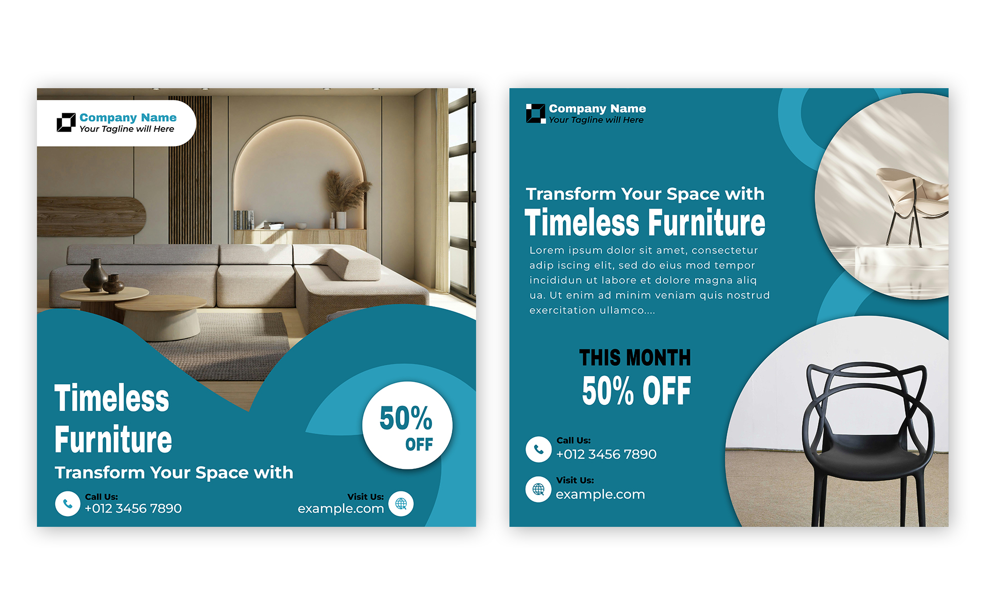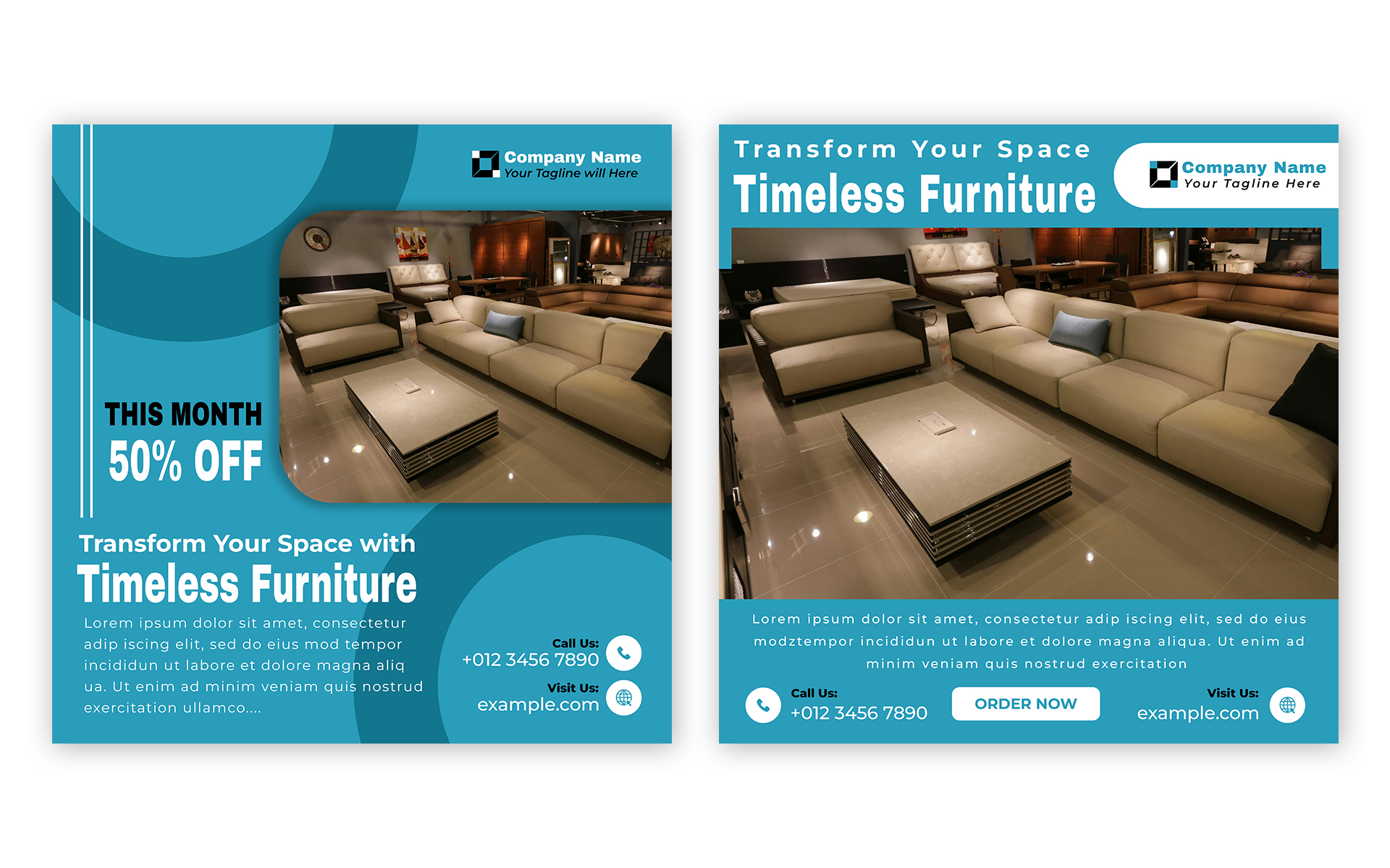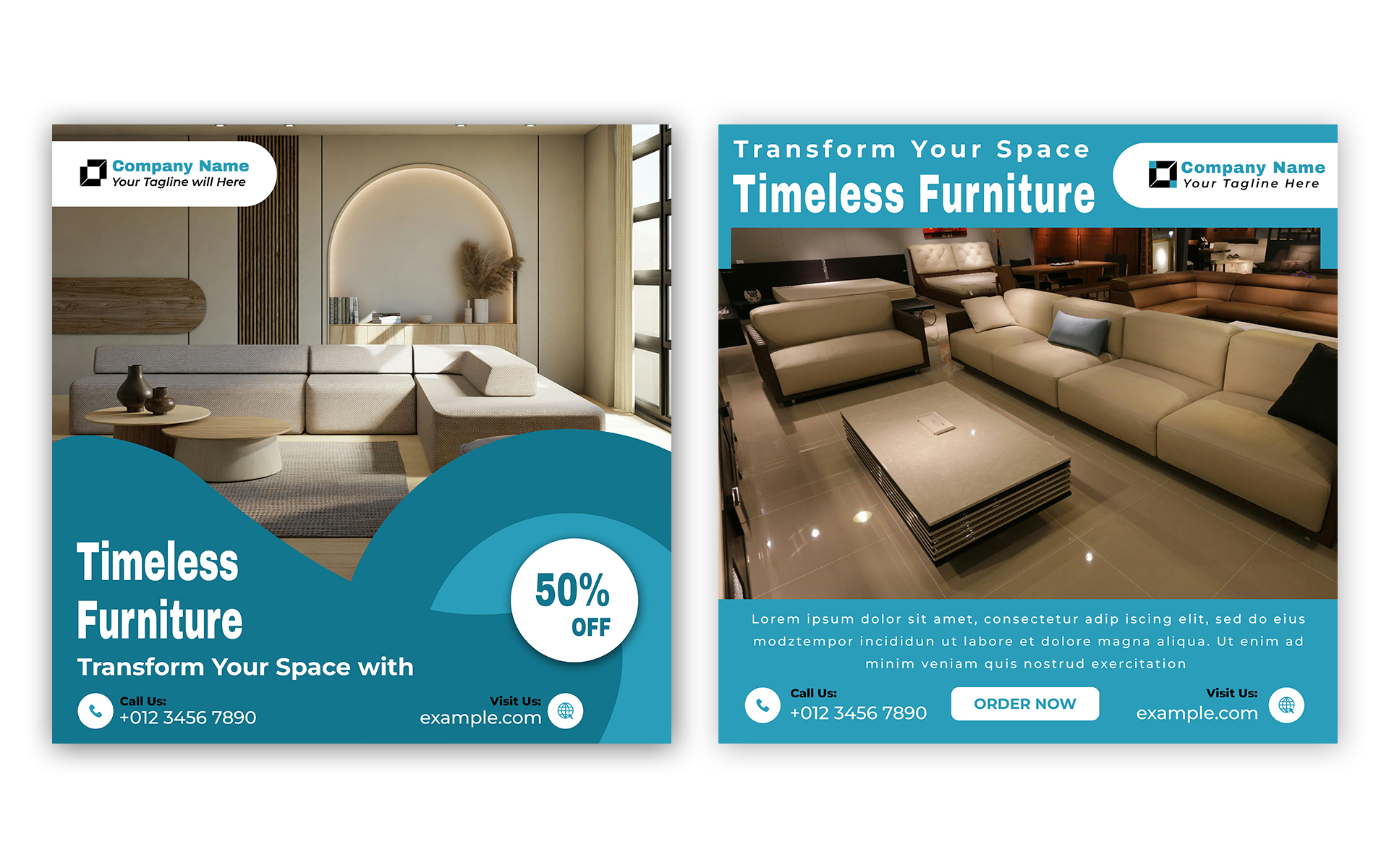 Designed with furniture brands in mind, the layouts use balanced white space, elegant fonts, and product-focused mockups to help you stand out on social media. Fully customizable and easy to use — just drag, drop, edit, and post!