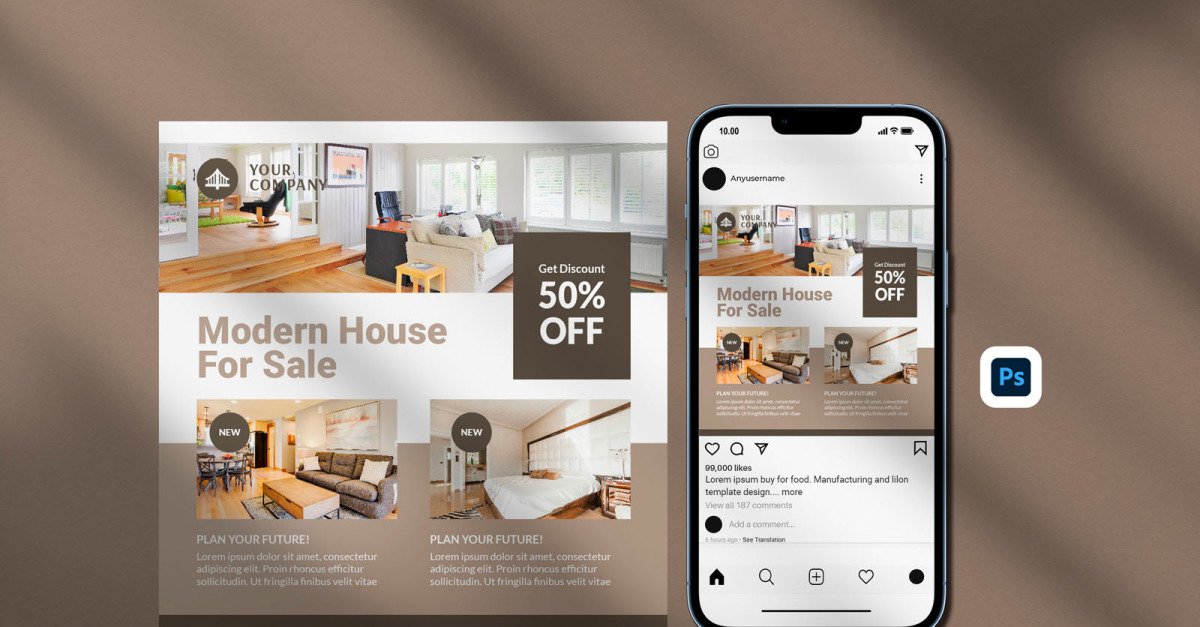 This Instagram post template has fully editable and customizable PSD files. This Instagram post template also has a creative style, and it's suitable for any purpose such as businesses, corporate, agency and can be also used for any other publishing like marketing promotions and company profiles.