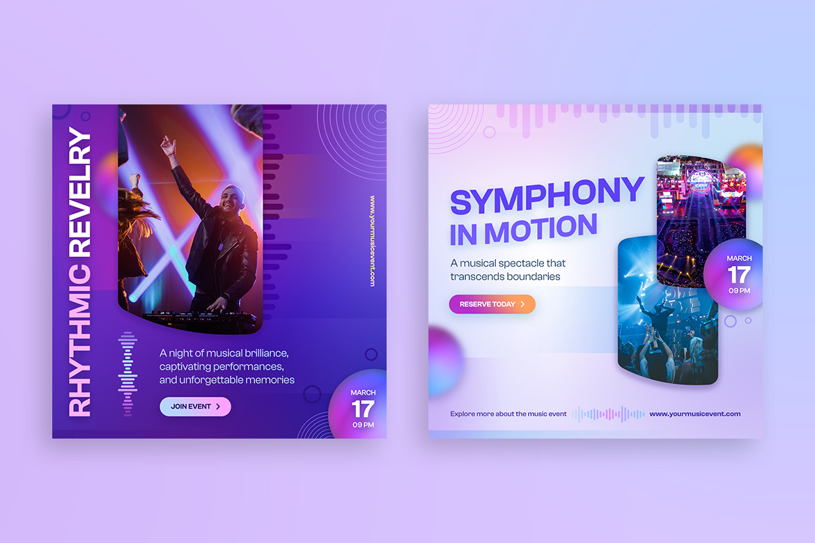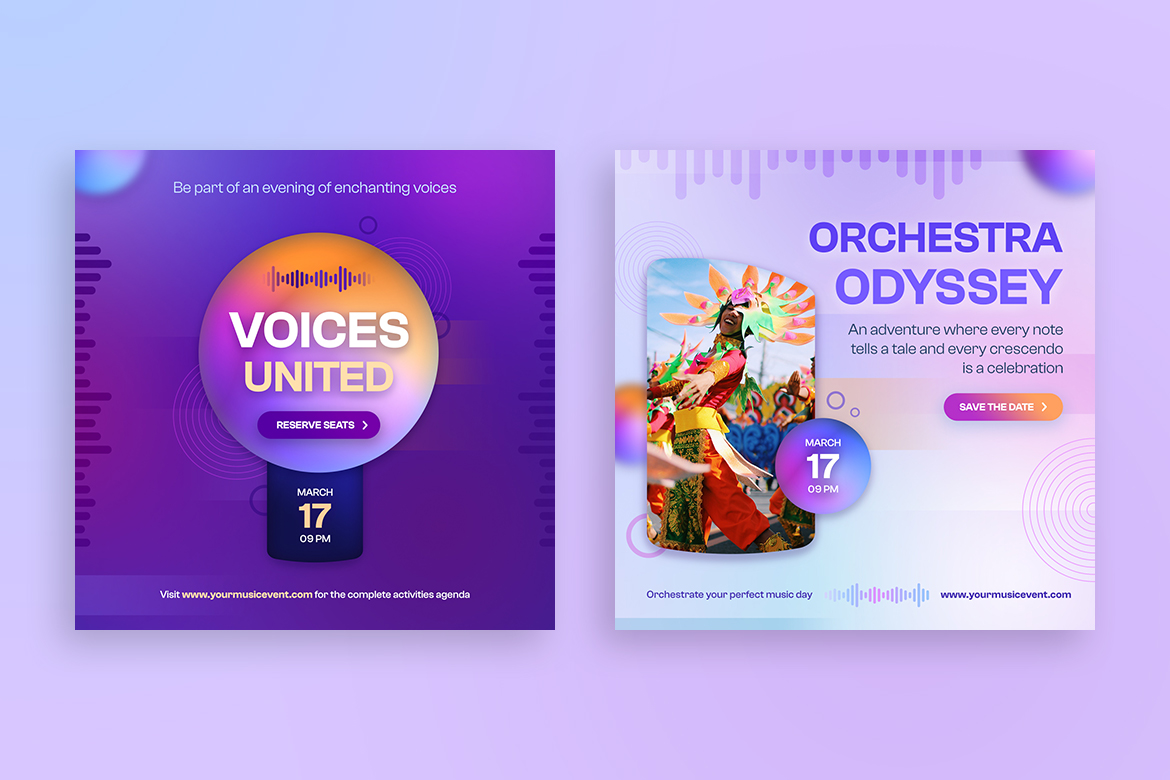 - Versatile Customization: From pulsating beats to serene melodies, these templates can harmonize with any musical genre or theme. Whether it's a rock concert with blazing guitars or an elegant orchestral performance, your promotional banners will strike the right chord.