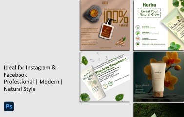Whether you are a skincare brand, herbal product seller, or cosmetic marketer, these templates will help you showcase your products with a clean, professional look. Simply replace the placeholder image with your own product, customize the text, and you are ready to post. Ideal for boosting engagement and building a professional brand presence online.