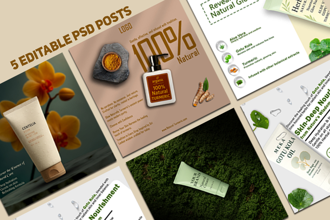 Whether you are a skincare brand, herbal product seller, or cosmetic marketer, these templates will help you showcase your products with a clean, professional look. Simply replace the placeholder image with your own product, customize the text, and you are ready to post. Ideal for boosting engagement and building a professional brand presence online.