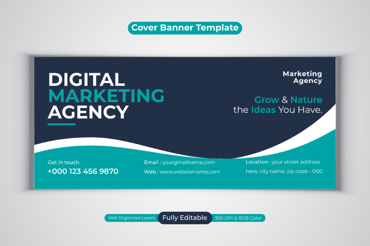 Digital Marketing Agency Facebook Cover Banner Design Vector Template