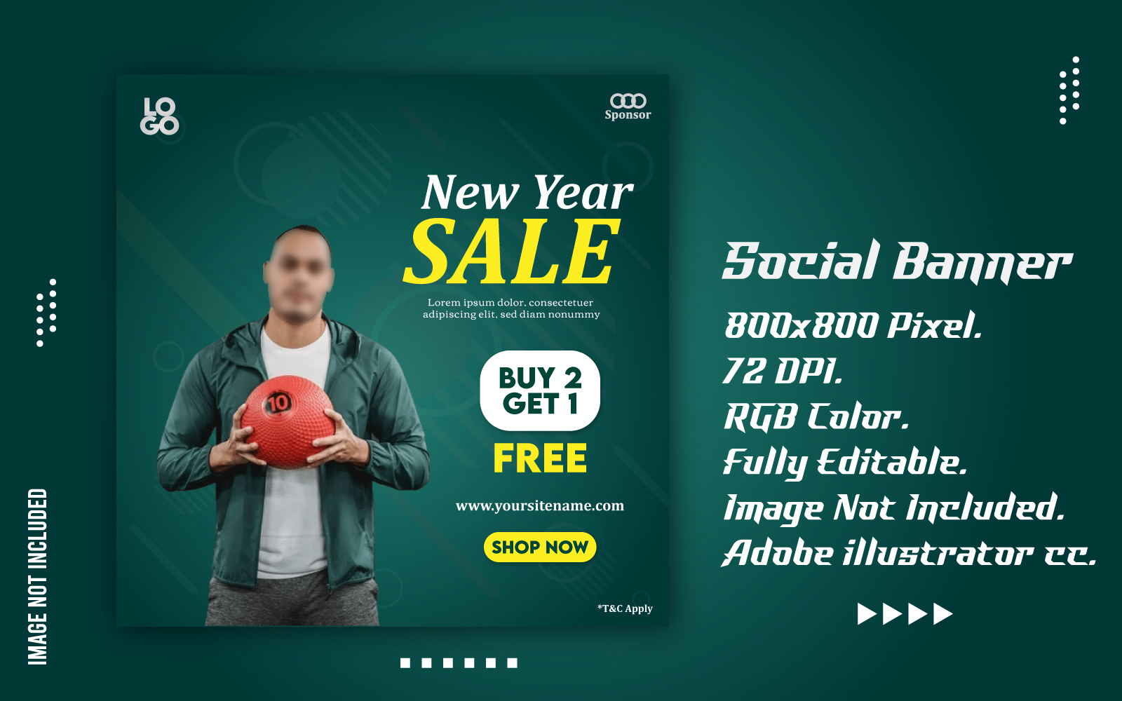 This is a Social media sale banner template. Created by Adobe Illustrator. The latest design, easy photo changing options, and free fonts have been used. All parts of the template included a photo to placeholders and the text area can be customized.