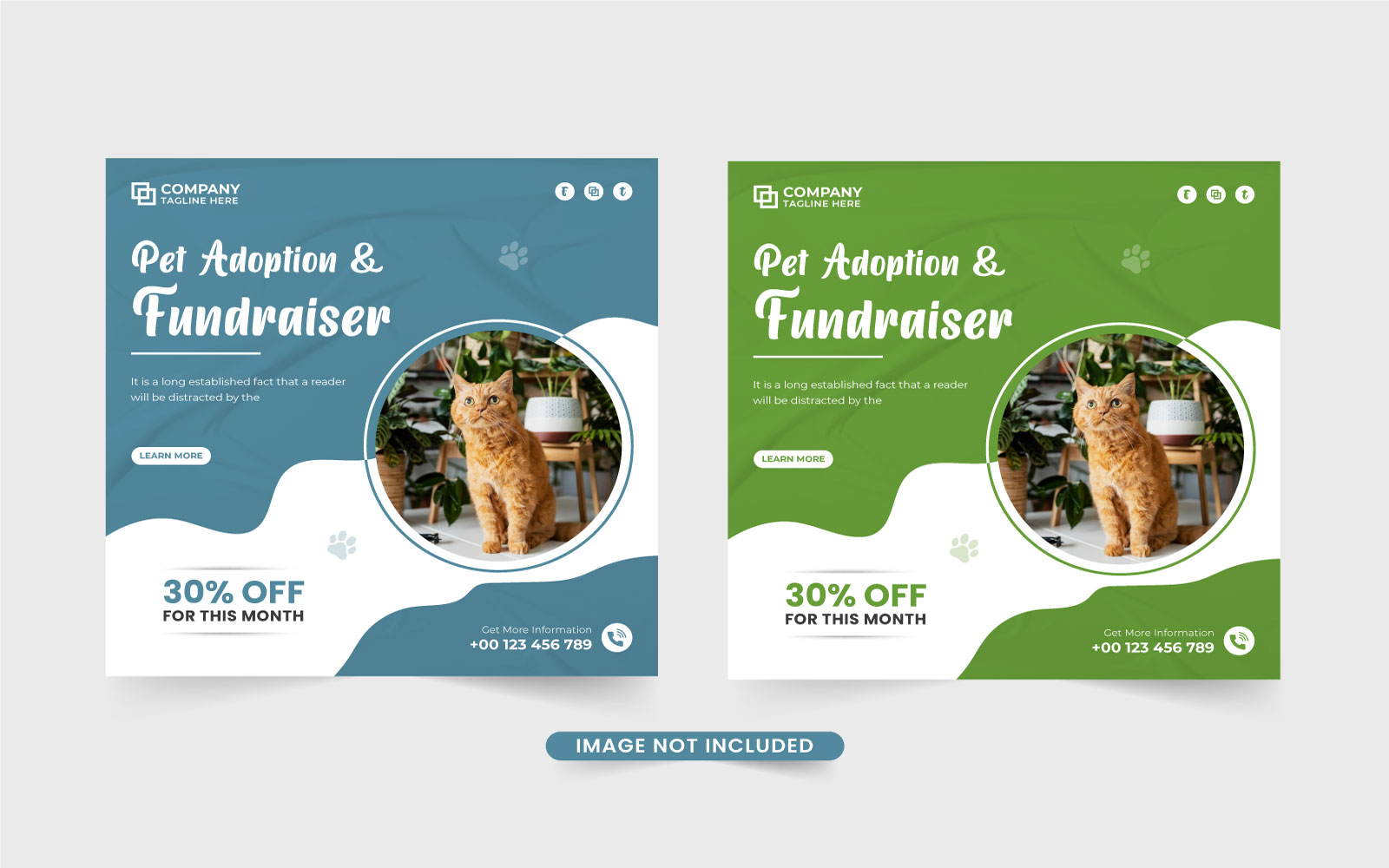 Pet care center promotional template. Pet shop web banner template for online marketing. Pet care and grooming center social media post design with green and blue colors. Animal grooming and healthcare service discount offer template.