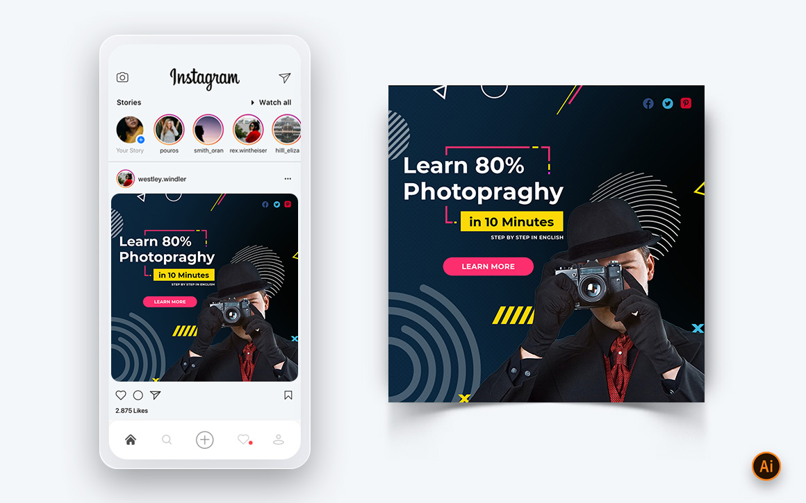 Beautiful and Elegant Social Media Instagram Post Template. This Template is fully customizable and compatible with Adobe illustration. AI Files Included. Pixel Perfect. Modern and Creative Design. You can easily update your Social Media Instagram Post in a Stylish and Colorful!