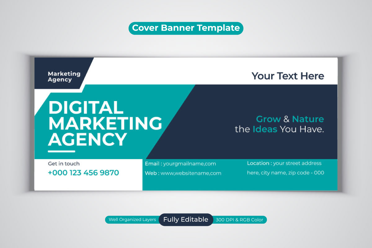 Digital Marketing Agency Facebook Cover Banner Design Vector Template