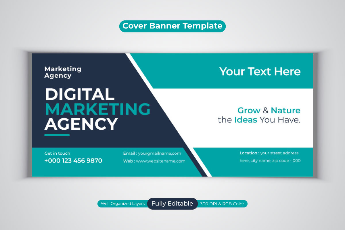 Digital Marketing Agency Facebook Cover Banner Design Vector Template