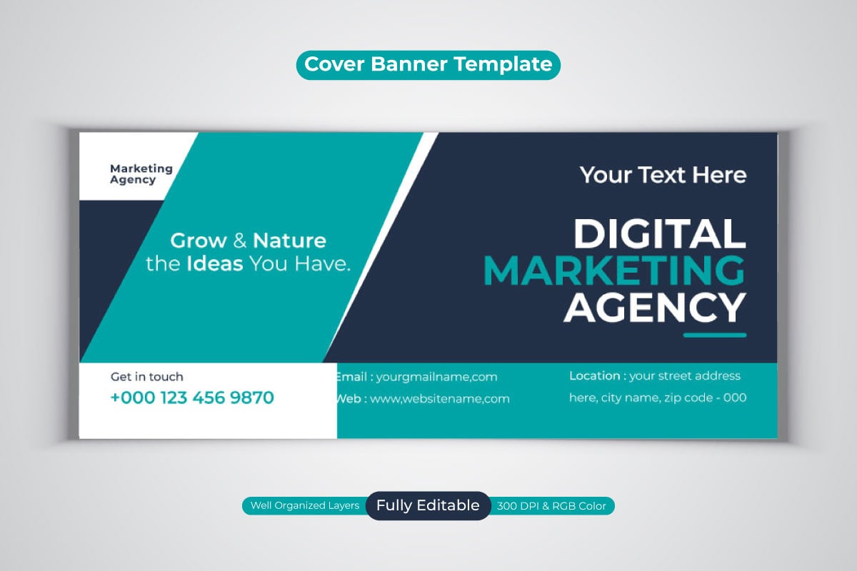 Digital Marketing Agency Facebook Cover Banner Design Vector Template