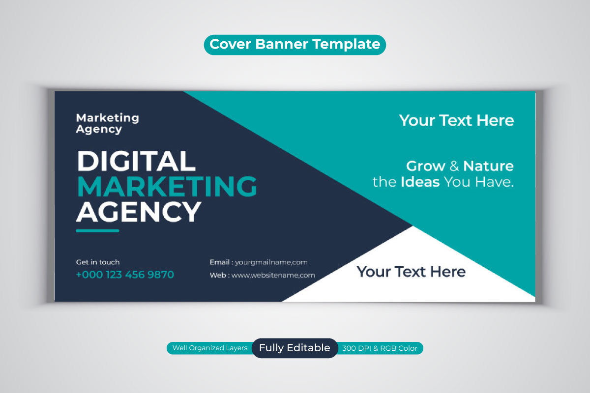 Professional Corporate Digital Marketing Agency Facebook Cover Vector Banner Template Social Media