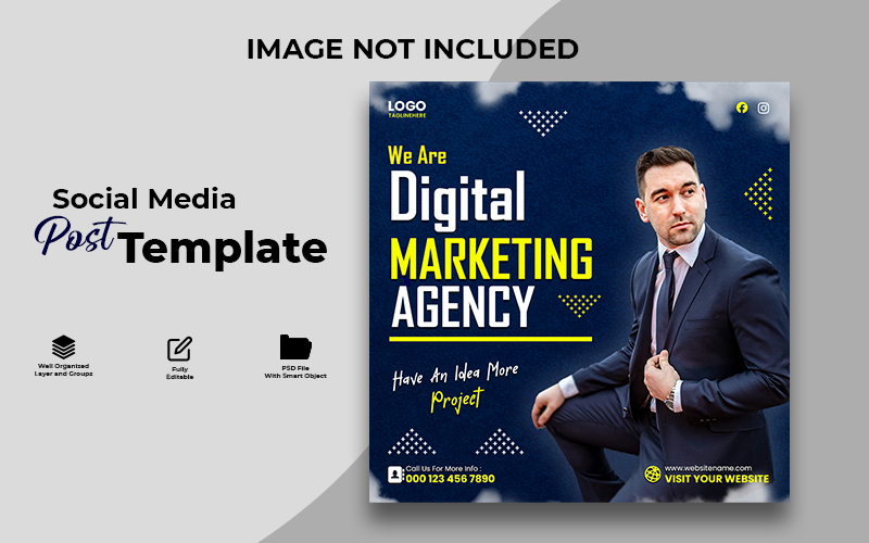 Professional Digital Marketing Agency Banner Template designed for business promotion, online advertising, and corporate branding. This creative design combines modern blue and yellow tones with bold typography, making it ideal for social media marketing posts, agency campaigns, and promotional materials. Perfect for showcasing marketing services, digital growth strategies, and business professionalism. Fully editable and print-ready PSD design for online use.