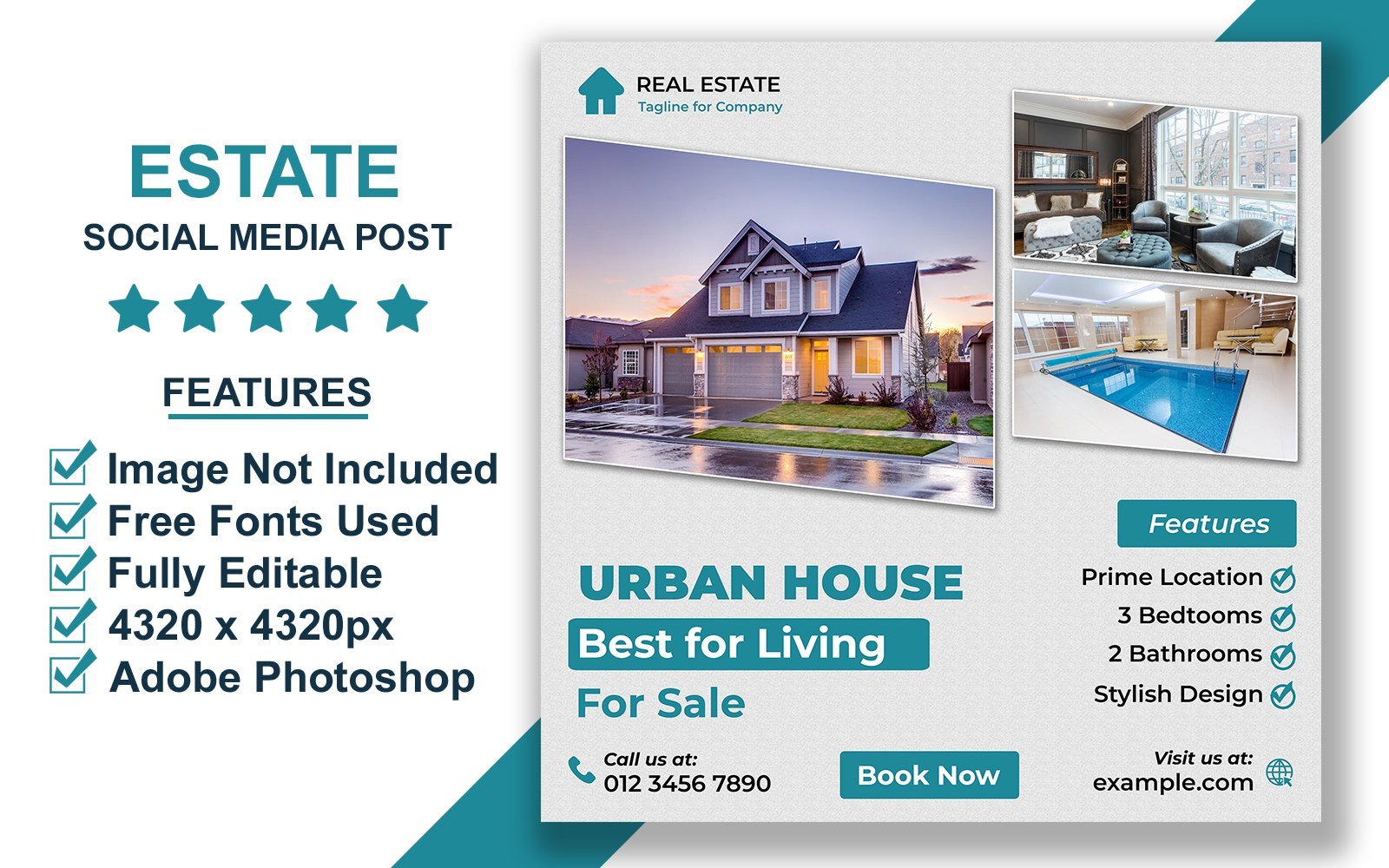 Professional real estate post template for social media marketing, property listings, and realtor business branding PSD
