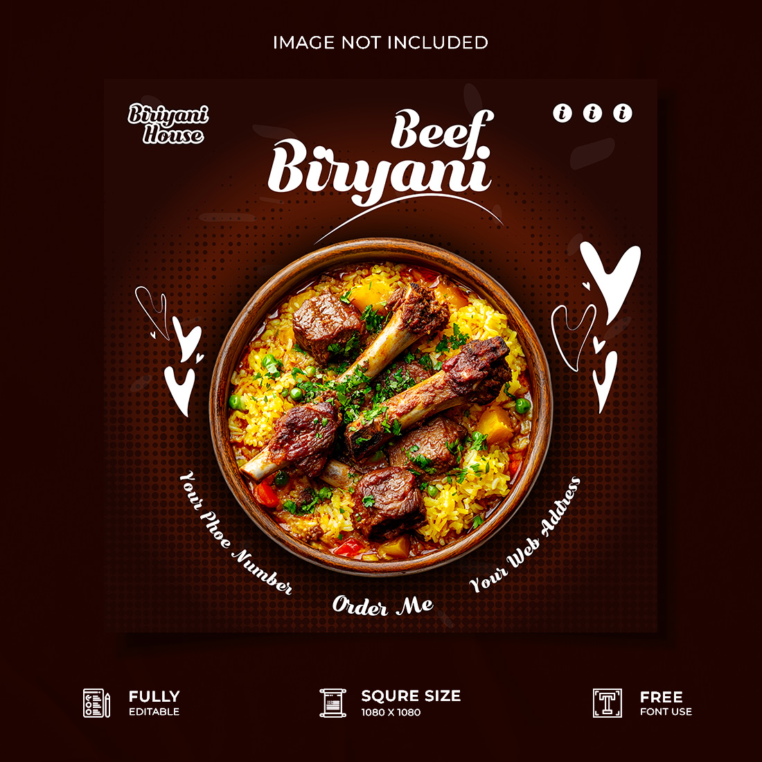 Professional restaurant biriyani advertisement social media poster template Social Media