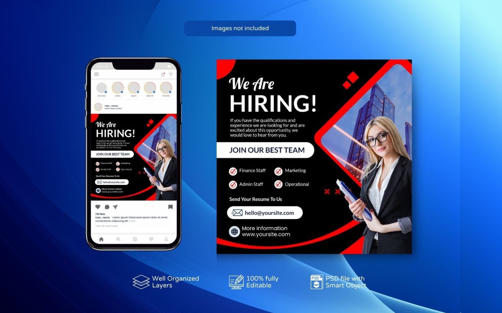 PSD Banner Template: Hiring Job Vacancy Post Red Social Media
