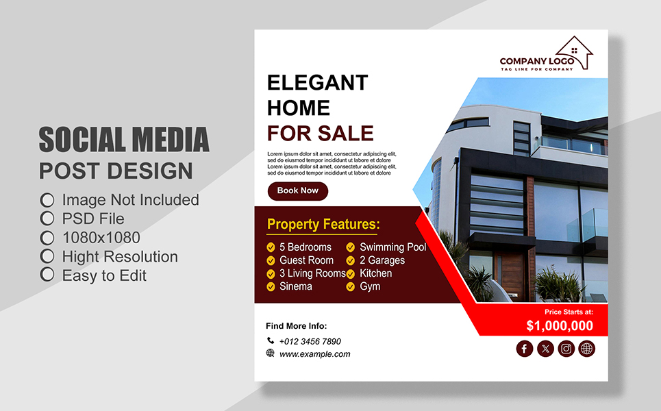 - Minimal Real Estate Social Media Template PSD for Property Sale and Rent Promtion