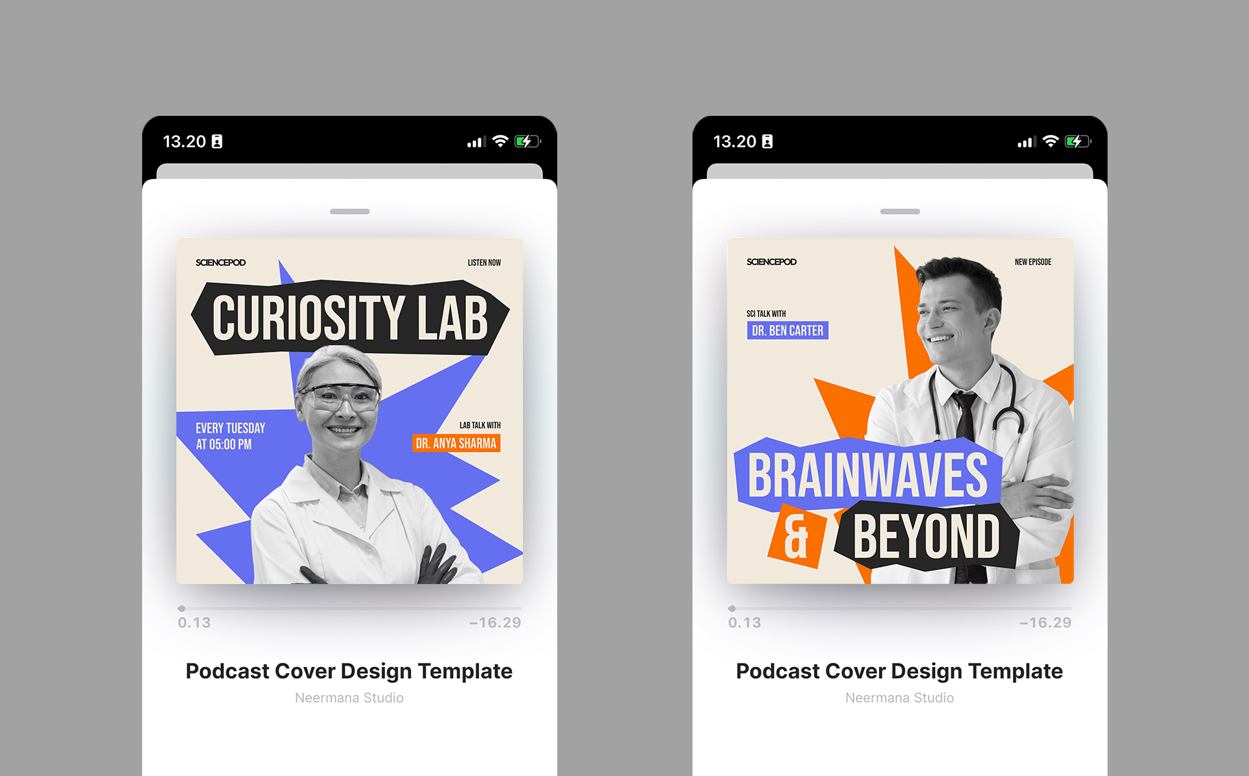 Podcast is a unique way to convey messages verbally. There's some podcast app you can use and of course all of them needs podcast cover. If you have no time to make a podcast cover, then you found a right place! With these podcast cover design template, you can: