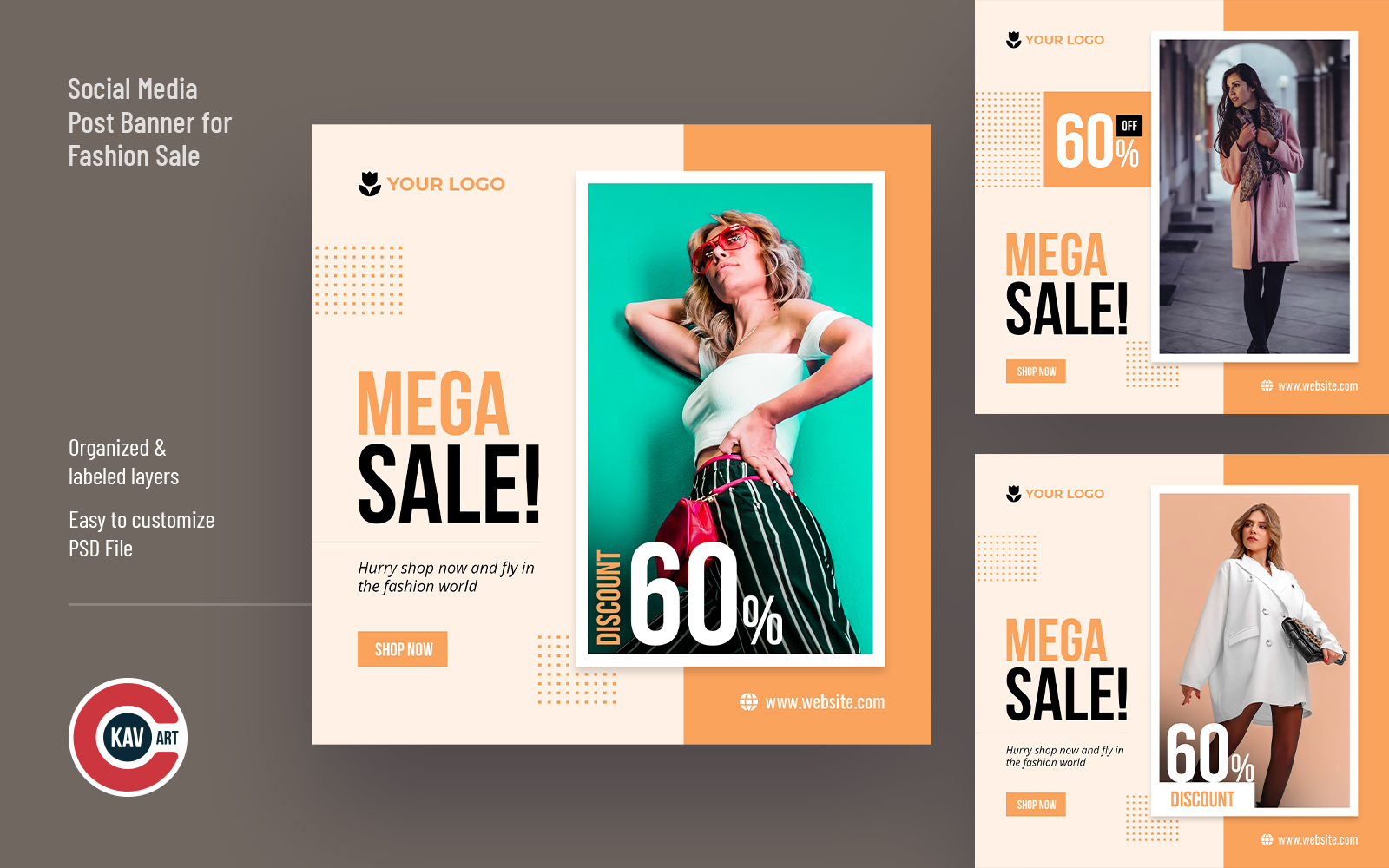Modern and clean design social media post banner for fashion or any mega shopping sale. Perfect for instagram post to display mega discont sale on fashion or any other items. Fully editable and organize layers PSD banner designs.