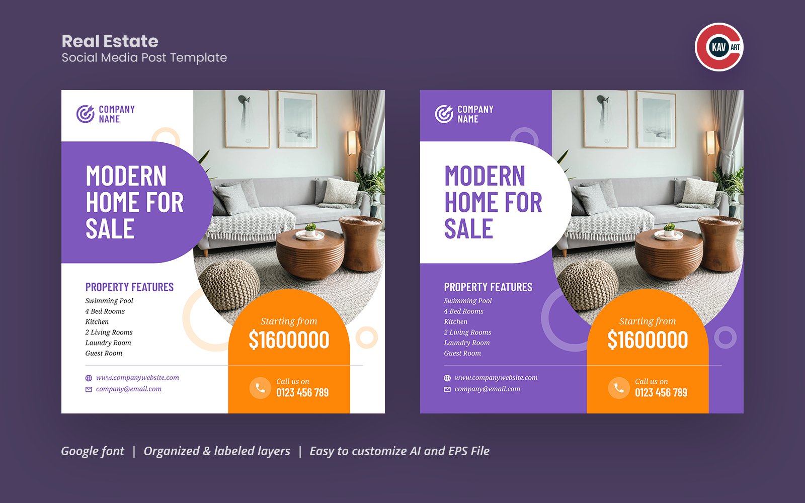 Real estate social media banner template to promote house / property offers and deals. Fully editable and organized layers to modify banner very easily.