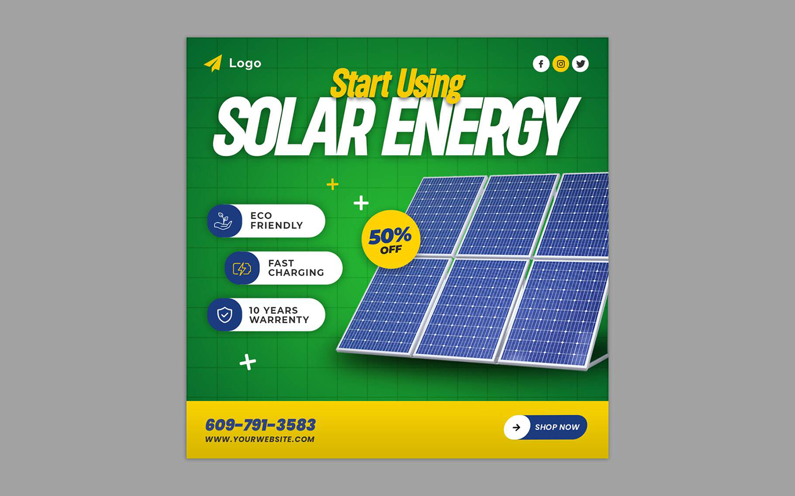 This is solar energy sale promotion social media banner PSD template. You can put any of your product on the stage to present display the product with discount.